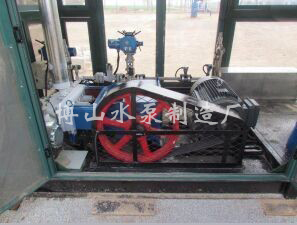 石油裝置主要由電機(jī)、皮帶輪、傳動(dòng)箱和泵頭組成,組裝在公共底座上。泵驅(qū)動(dòng)端的作用是將電機(jī)的旋轉(zhuǎn)運(yùn)動(dòng)變?yōu)橥鶑?fù)運(yùn)動(dòng)且降速,并將電機(jī)的輸出功率傳遞給泵頭液力端,電機(jī)通過(guò)皮帶輪、曲軸、連桿和十字頭等部件來(lái)完成轉(zhuǎn)換和降速。傳動(dòng)系統(tǒng)的曲軸、軸承結(jié)構(gòu)為強(qiáng)制和飛濺浸油型式,這使得動(dòng)力系統(tǒng)的壽命大大延長(zhǎng)。泵頭由泵頭、柱塞、密封器、進(jìn)液閥組成。本泵采用了具有良好耐磨性的材料做密封環(huán)和導(dǎo)向環(huán),因而其工作壽命長(zhǎng)。密封由密封性能優(yōu)良的密封組件構(gòu)成,確保了泵在正常工作壓力下,能夠可靠無(wú)故障的運(yùn)行。